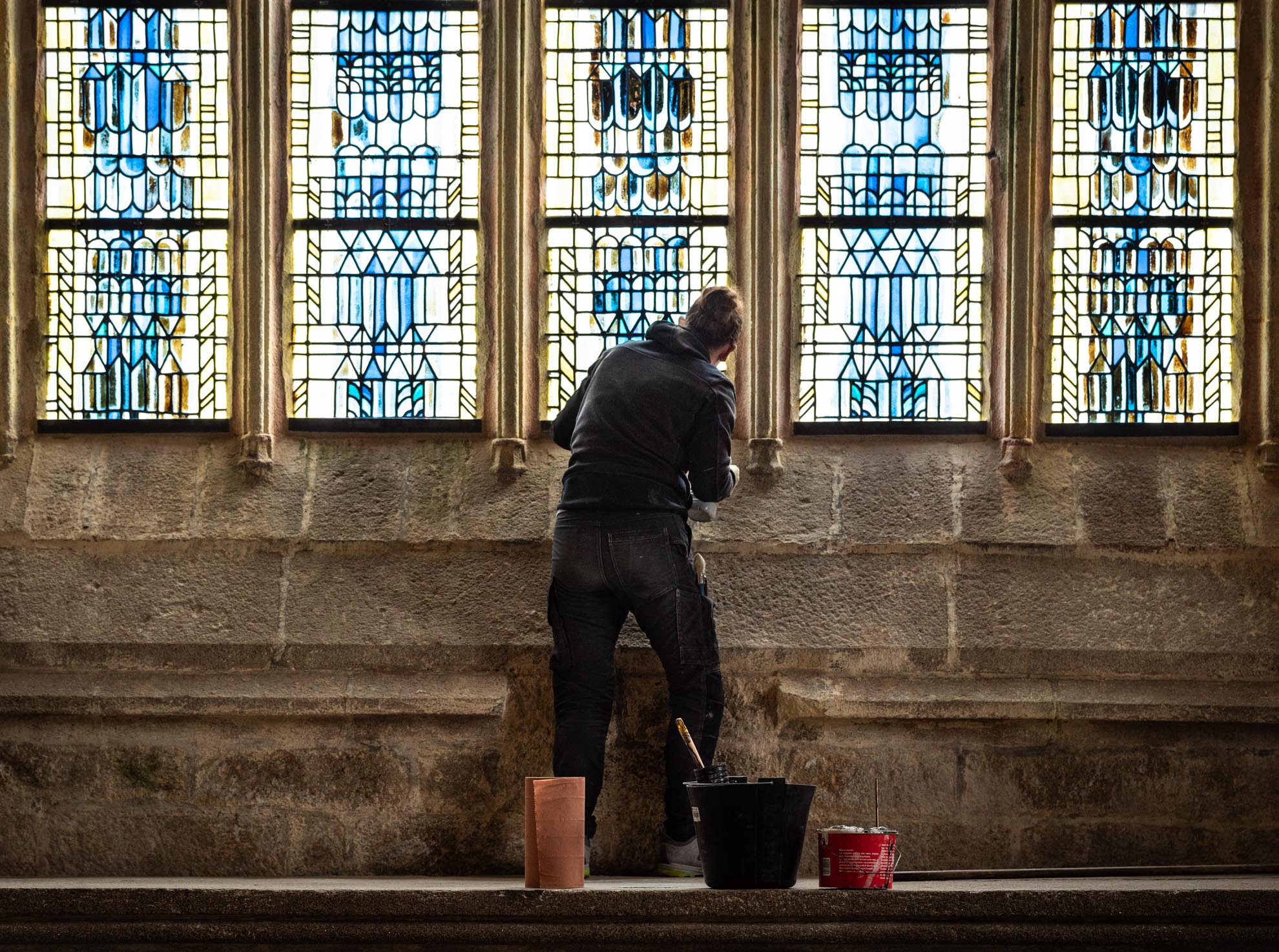 Restauration de vitraux en atelier